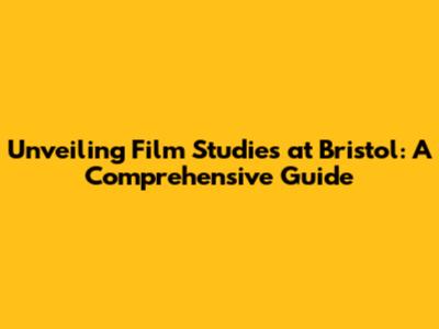 Unveiling Film Studies At Bristol: A Comprehensive Guide