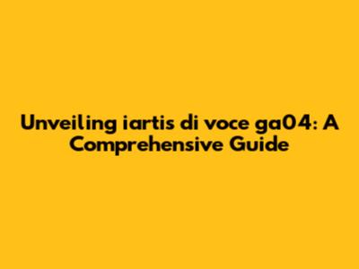 Unveiling Iartis Di Voce Ga04: A Comprehensive Guide