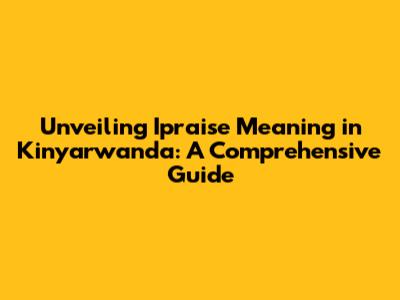 Unveiling 'Ipraise' Meaning In Kinyarwanda: A Comprehensive Guide