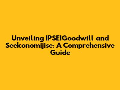 Unveiling IPSEIGoodwill And Seekonomijise: A Comprehensive Guide