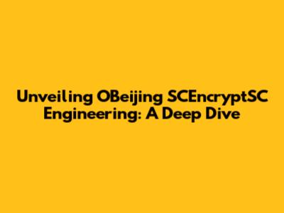 Hey guys! Ever heard of OBEijing SCEncryptSC Engineering? Probably not, unless you're knee-deep in the world of cutting-edge technology and software. But trust me, it's a fascinating area, and we're going to break it down. In this article, we'll delve deep into what this engineering marvel is all about, explore its core components, see what problems it solves, and how it's shaping the future of digital security. Ready to get your tech on? Let's dive in!