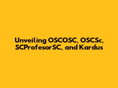 Unveiling OSCOSC, OSCSc, SCProfesorSC, And Kardus