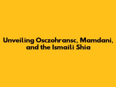 Unveiling Osczohransc, Mamdani, And The Ismaili Shia