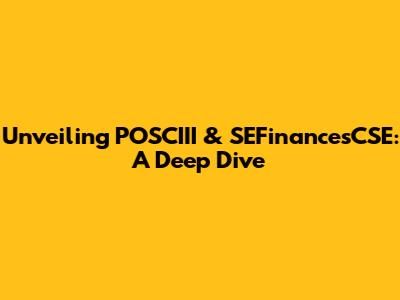 Unveiling POSCIII & SEFinancesCSE: A Deep Dive