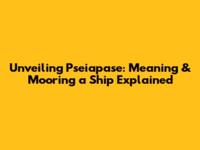 Unveiling 'Pseiapase': Meaning & Mooring A Ship Explained
