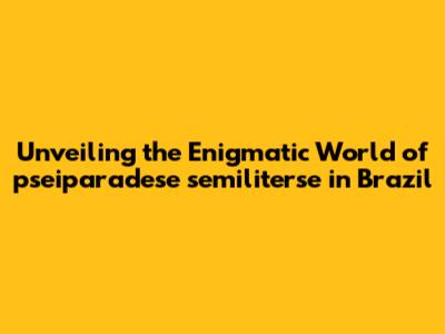 Unveiling The Enigmatic World Of 'pseiparadese Semiliterse' In Brazil