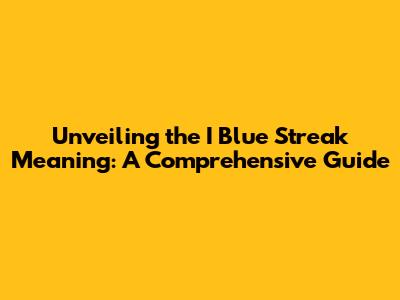 Unveiling The 'I Blue Streak' Meaning: A Comprehensive Guide
