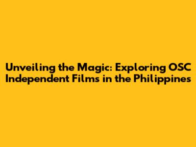 Unveiling The Magic: Exploring OSC Independent Films In The Philippines