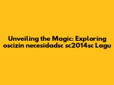 Unveiling The Magic: Exploring Oscizin Necesidadsc Sc2014sc Lagu