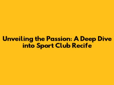 Unveiling The Passion: A Deep Dive Into Sport Club Recife