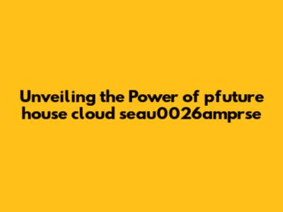 Unveiling The Power Of Pfuture House Cloud Seau0026amprse