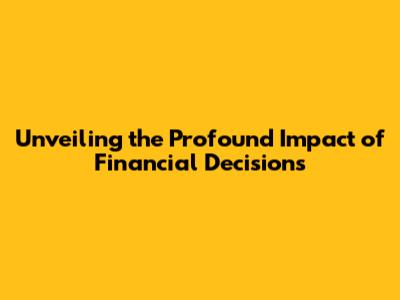 Unveiling The Profound Impact Of Financial Decisions