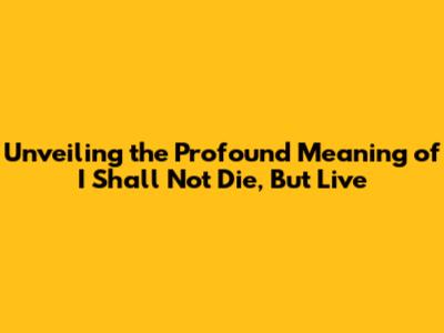 Unveiling The Profound Meaning Of I Shall Not Die, But Live