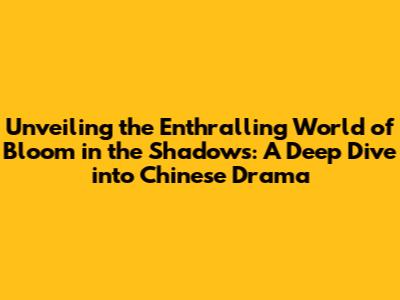 Unveiling The Secrets Of Bloom In The Shadows: A Drama China Deep Dive