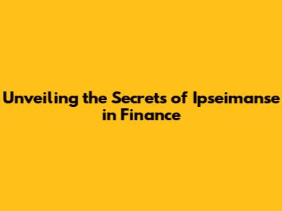 Unveiling The Secrets Of Ipseimanse In Finance