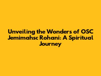 Unveiling The Wonders Of OSC Jemimahsc Rohani: A Spiritual Journey
