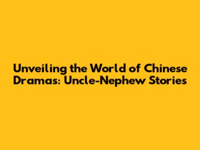 Unveiling The World Of Chinese Dramas: Uncle-Nephew Stories