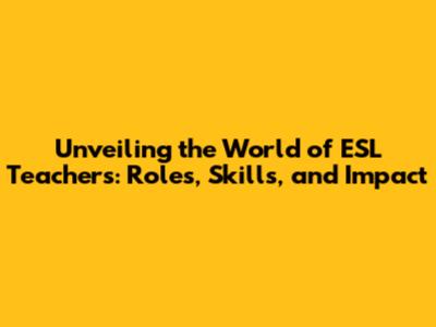 Unveiling The World Of ESL Teachers: Roles, Skills, And Impact