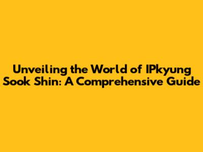 Unveiling The World Of IPkyung Sook Shin: A Comprehensive Guide