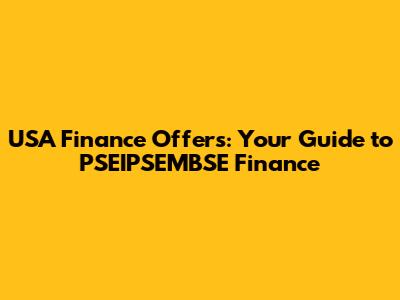 USA Finance Offers: Your Guide To PSEIPSEMBSE Finance