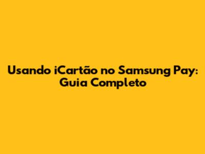 Usando ICartão No Samsung Pay: Guia Completo