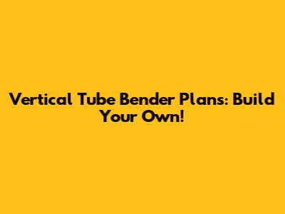 Vertical Tube Bender Plans: Build Your Own!