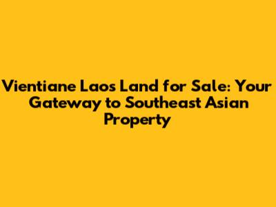 Vientiane Laos Land For Sale: Your Guide To Prime Real Estate