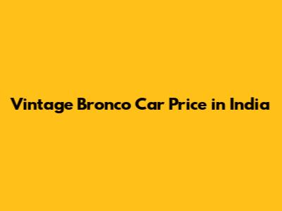 Vintage Bronco: Price And Availability In India
