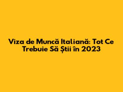 Bună ziua, oameni buni! Dacă v-ați gândit vreodată să lucrați în Italia, probabil că ați auzit deja de viza de muncă italiană. Ei bine, în 2023, procesul poate părea un pic complicat, dar nu vă faceți griji, suntem aici să vă ghidăm prin el. În acest articol, vom explora tot ce trebuie să știți despre viza de muncă italiană în 2023, de la tipurile de vize disponibile, cerințele necesare, până la sfaturi practice pentru a vă spori șansele de succes. Hai să începem aventura asta împreună!