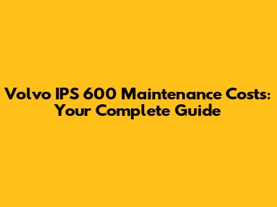 Key Factors Influencing Volvo IPS 600 Service Costs