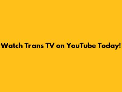 Hey guys! Are you looking for Trans TV content on YouTube today? You're in the right place! In this article, we'll dive into how you can catch your favorite Trans TV shows on YouTube, making sure you don't miss out on any of the action. Whether it's the latest dramas, exciting reality shows, or hilarious comedies, we've got you covered. So, grab your popcorn, get comfy, and let's explore the world of Trans TV on YouTube!