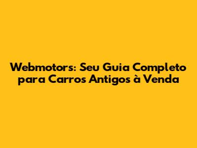 Webmotors: Seu Guia Completo Para Carros Antigos À Venda