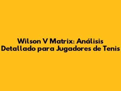 Wilson V Matrix: Análisis, Características Y Rendimiento