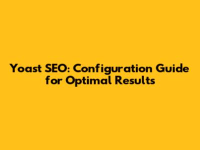 Yoast SEO: Configuration Guide For Optimal Results