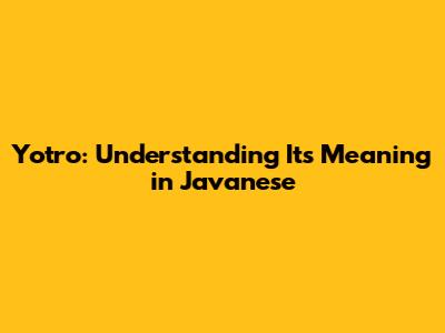 Yotro: Understanding Its Meaning In Javanese