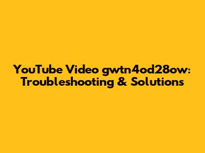 YouTube Video Gwtn4od28ow: Troubleshooting & Solutions