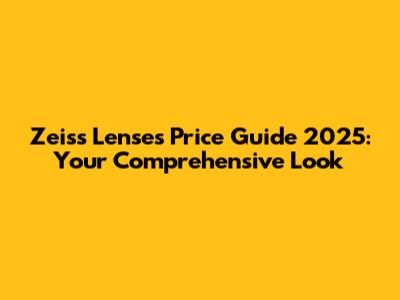 Zeiss Lenses Price Guide 2025: What You Need To Know