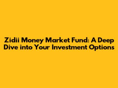 Zidii Money Market Fund: Your Guide To Smart Investing